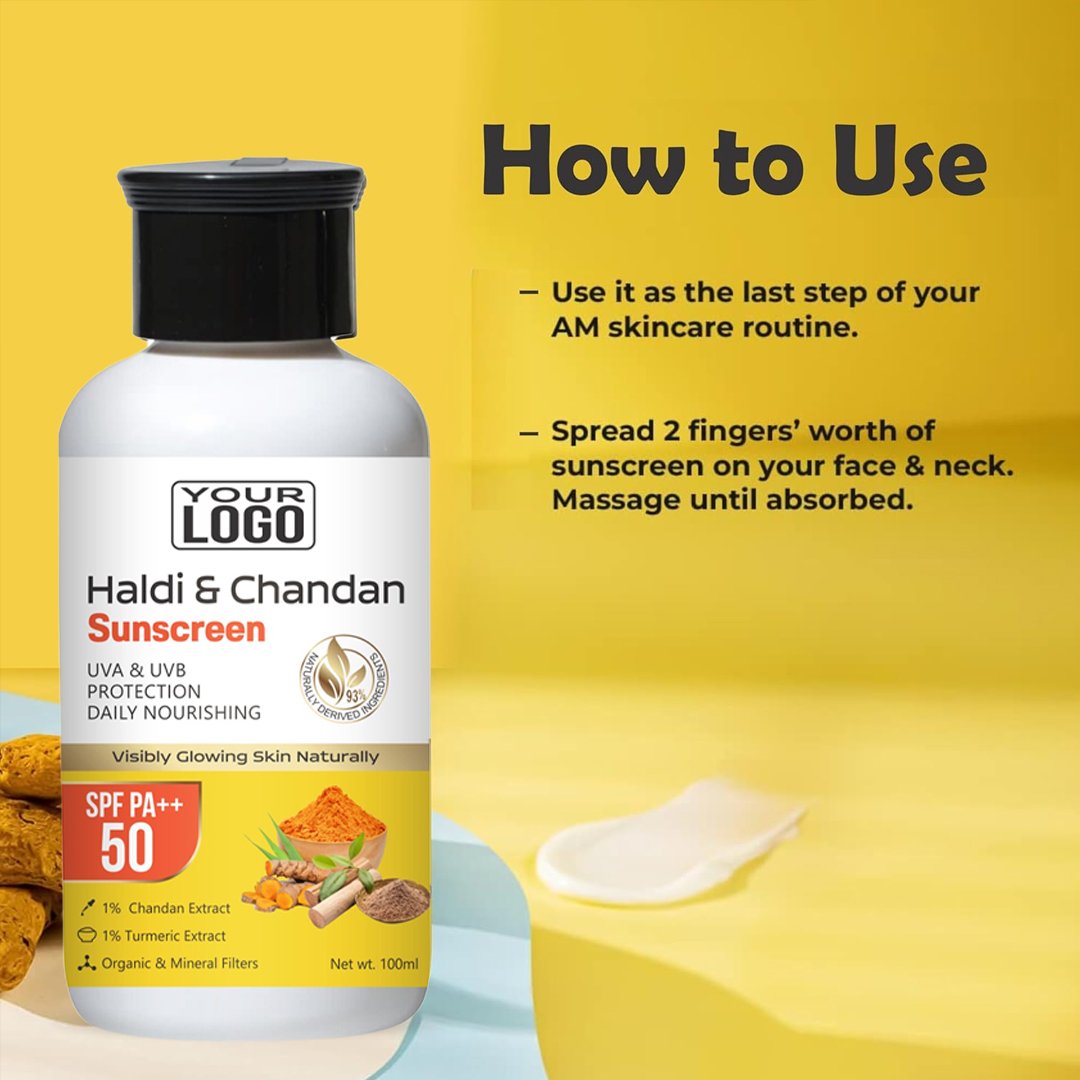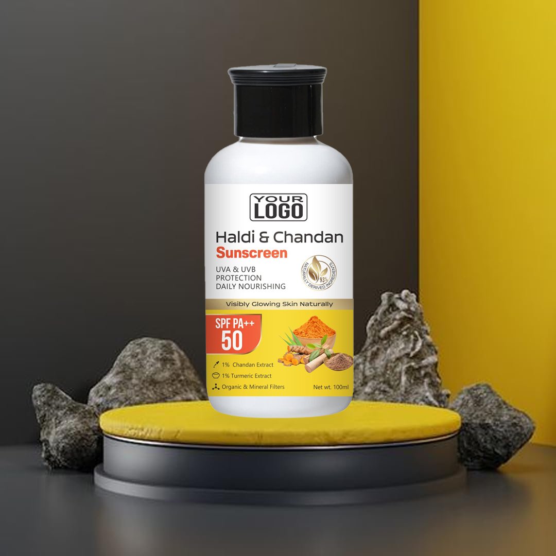 Description: Introducing our Haldi and Chandan Sunscreen, a unique blend of turmeric (haldi) and sandalwood (chandan) designed to provide broad-spectrum SPF protection while nourishing and soothing the skin. This sunscreen offers effective defense against UVA and
